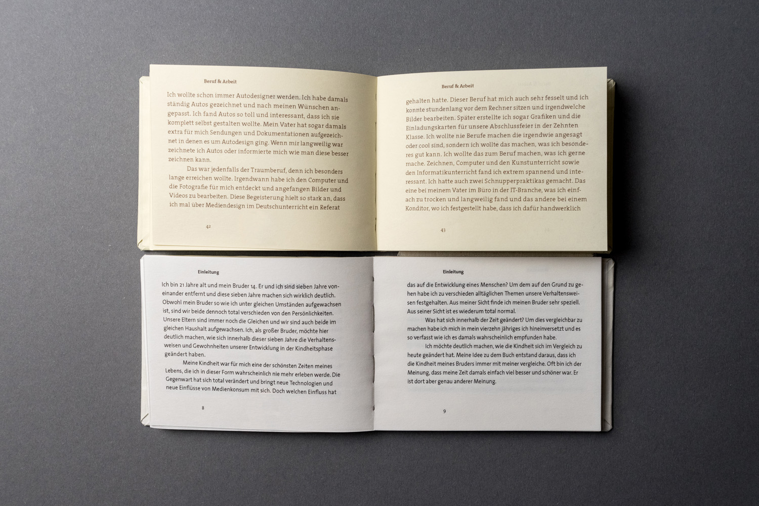 Bei dieser Arbeit ging es vor allem um das Layout, den Textsatz, die Schriftwahl und die eigenständige Herstellung eines Buches.